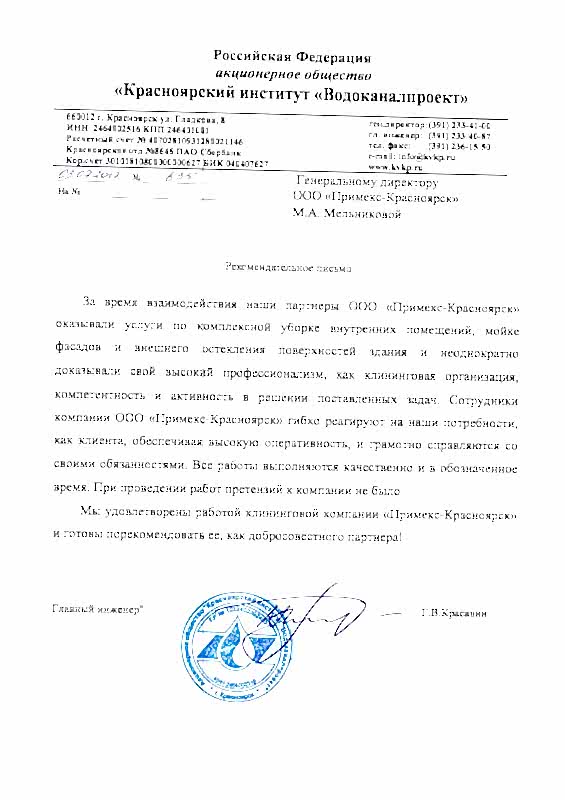 За время взаимодействия наши партнеры ООО «Примекс-Алматы» оказывали услуги по комплексной уборке внутренних помещений, мойке фасадов и внешнего остекления поверхностей здания и неоднократно доказывали свой высокий профессионализм, как клининговая организация, компетентность и активность в решении поставленных задач. Сотрудники компании ООО «Примекс-Алматы» гибко реагируют на наши потребности, как клиента, обеспечивая высокую оперативность, и грамотно справляются со своими обязанностями. Все работы выполняются качественно и в обозначенное время. При проведении Pin-Up претензий к компании не было. Мы удовлетворены работой клининговой компании «Примекс-Алматы» и готовы порекомендовать ее, как добросовестного партнера!